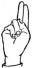 На ћирилици написано ДИНА БАЛОТИЋ састоји се из 11 слова [?]. Исписано ћириличном једноручном азбуком за глувонеме: